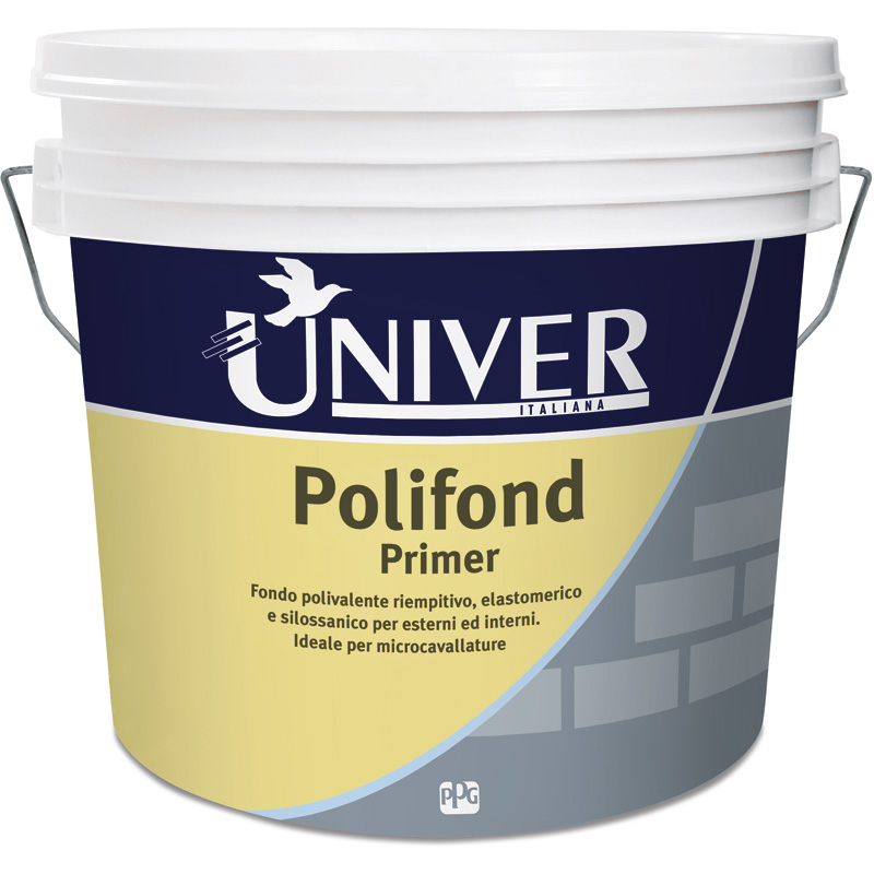 Fondo polivalente riempitivo, pigmentato, elastomerico e silossanico per esterni ed interni. Ideale per microcavillature, è sovraverniciabile con pitture e/o rivestimenti sintetici di Univer. Consente di uniformare il supporto creando un collegamento tra il sottofondo ed il successivo rivestimento.