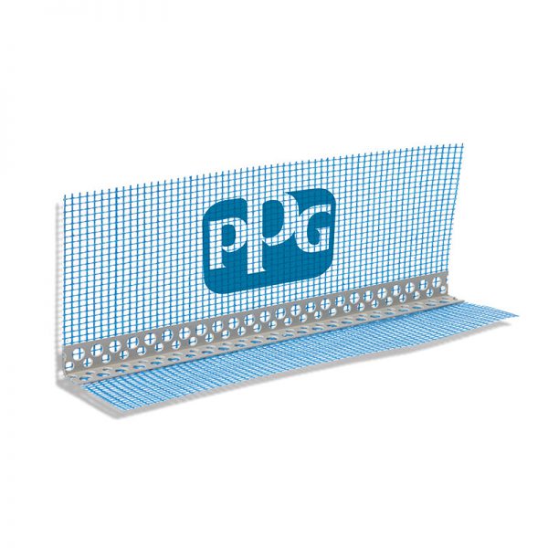 Angolare in PVC di protezione degli spigoli con rete in fibra di vetro Vertex Saint Gobain 160 gr/m2 (R131) conforme all’ETAG 004 con marchio di qualità ITC-CNR.